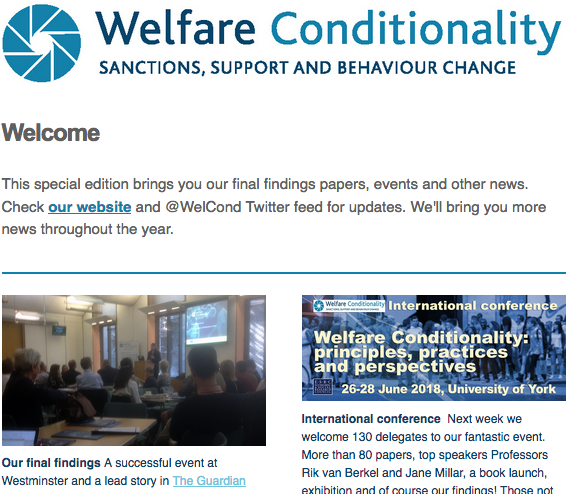 Announcing a major international conference on welfare conditionality, 26-28 June 2018, University of York, UK